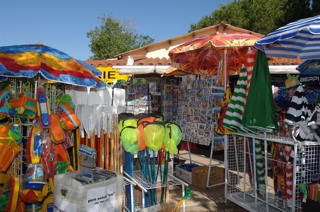 Il y a un peu de tout à la Maison de la presse, c’est bien pour cela qu’on ne peut la manquer. Elle se voit de loin, elle gagne sur le trottoir, elle manque sans doute de place, et elle aime bien sortir prendre l’air, elle aussi, pour déballer toutes ces choses enfermées en hiver, qui pendent maintenant sous la toile bleue du store. Il est bien sûr possible de se faufiler entre les tourniquets des cartes postales, de jeter un coup d’œil aux albums de mots cachés, mots fléchés, mots secrets, mots magiques ou croisés, aux magazines en promotion, vendus par lots de trois sous emballage plastique dans des caisses à même le sol ; ou encore de feuilleter les collections en évidence : « la pêche au lancer du bord, les coquillages de nos côtes, l’histoire de notre commune… » ; ou, simplement, d’acheter son journal, en ayant tout de même apprécié au passage la présence des journaux anglais ou allemands et, aussi, de toutes les éditions possibles et imaginables du grand quotidien régional. Il y a enfin la petite caisse, comme une chaire, pour « payer sans entrer » : tout cela est dehors, sous l’avancée du store, où pendent des objets, des jeux, des accessoires qui ont leur rôle à jouer comme éléments de décor au Théâtre de l’été.